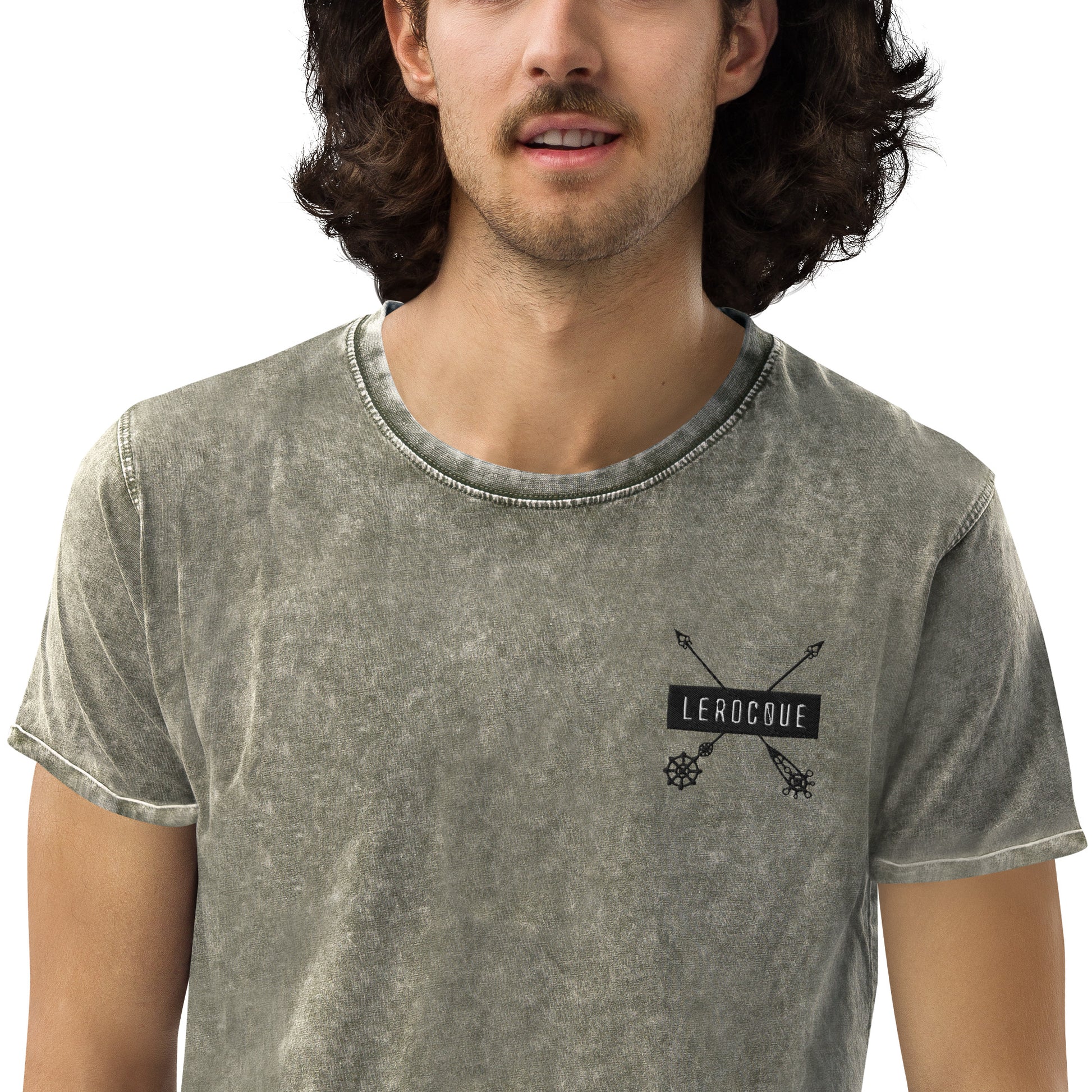 This denim t-shirt is made out of 100% combed cotton and has a classic rounded neckline with ribbed sleeve cuffs. It's soft, comfortable, and a must-have for every fashion enthusiast!